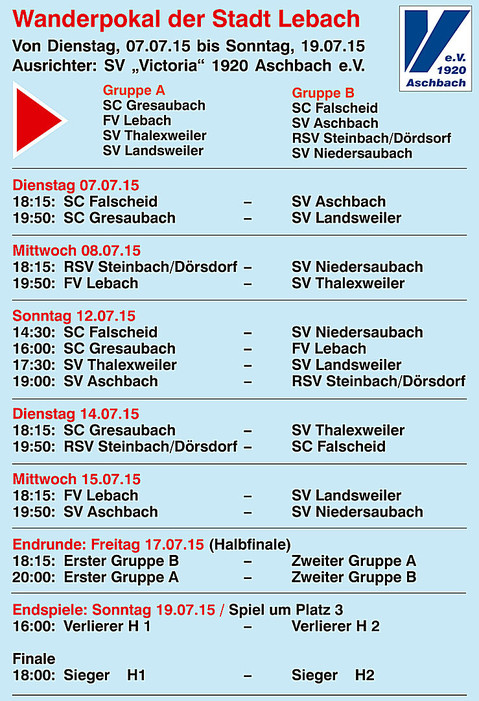 Im Auftaktspiel treffen wir um 18:15 Uhr auf den SC Falscheid. Im Anschluss findet um 19:50 die Partie zwischen dem SC Gresaubach und dem SV Landsweiler statt.